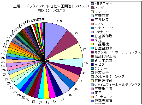 上場インデックスファンド日経中国関連株50(1556)の内訳